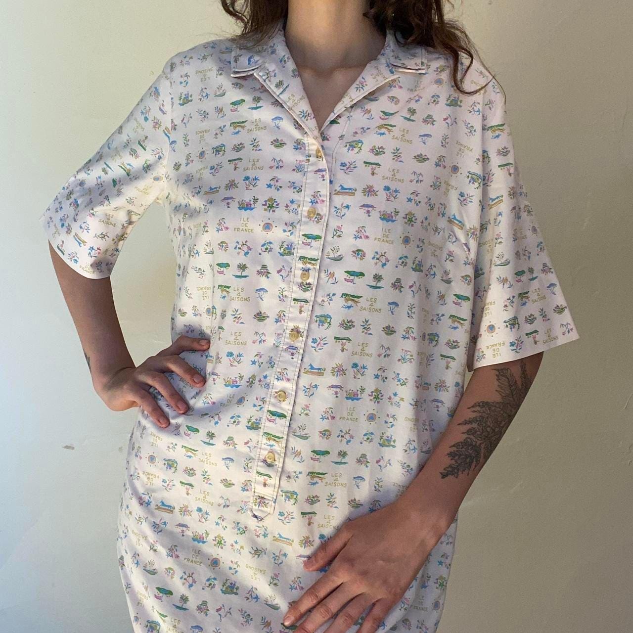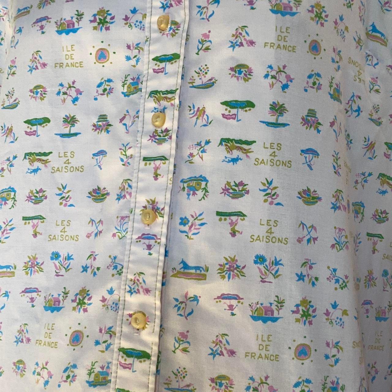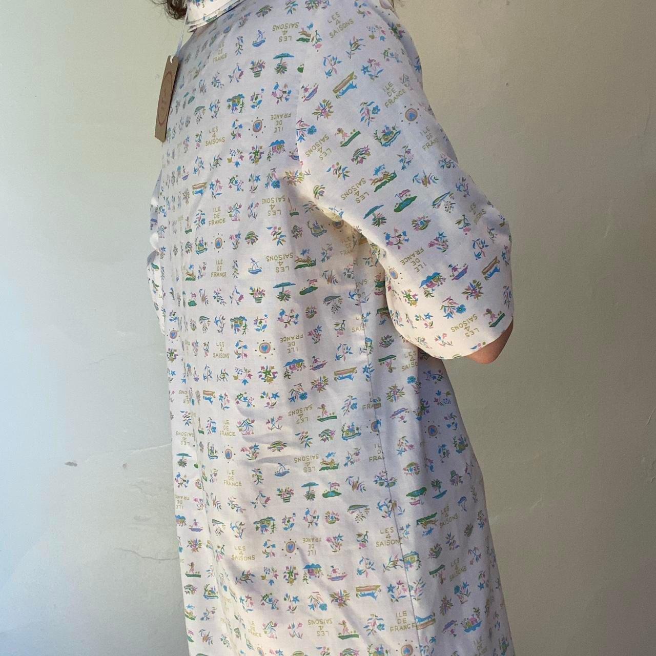 60s/70s adorable “Ile de France” and “Les 4 Saisons” novelty print midi smock dress