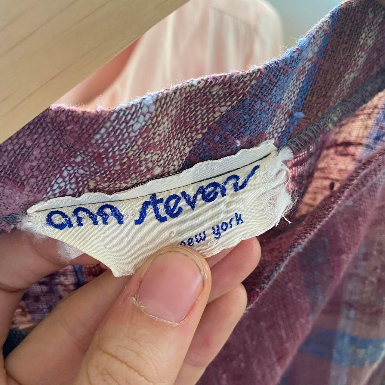 1970s Ann Stevens New York purple plaid linen 2 piece set