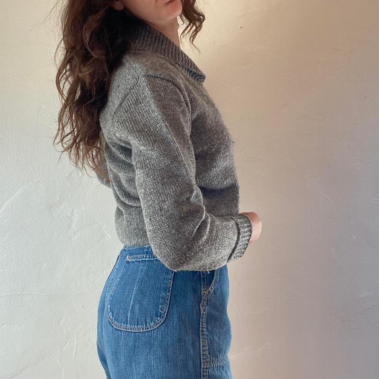 70s gray wool sweater with shawl collar