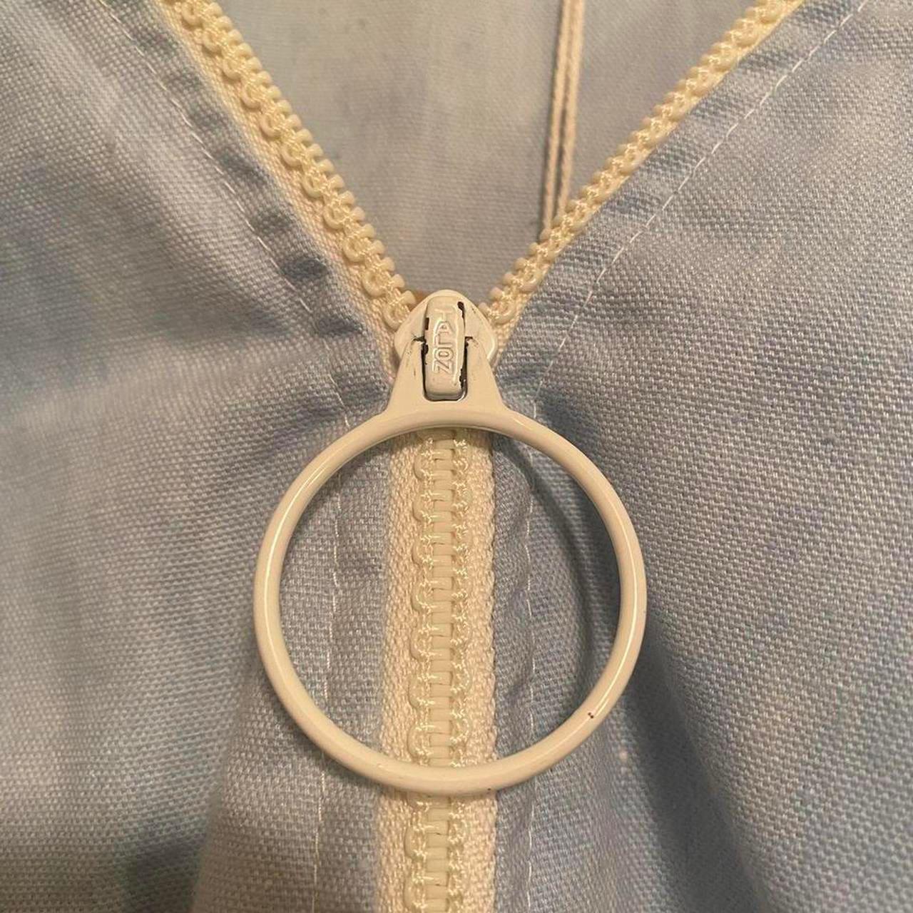 60s/70s chambray light blue faded cotton smock dress with talon circle zipper and big pockets